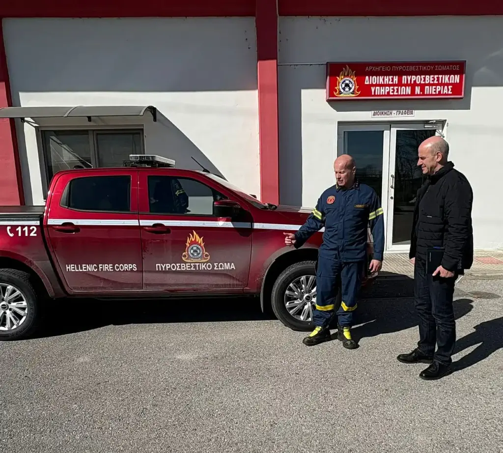 Σε επίπεδο επιχειρησιακού εξοπλισμού, η Πυροσβεστική Υπηρεσία Πιερίας έχει ήδη ενισχυθεί με δύο νέα οχήματα – ένα 9θέσιο μεταφοράς προσωπικού και ένα 4Χ4 τετράπορτο όχημα για τις ανάγκες μετακινήσεων των στελεχών. Ταυτόχρονα, αναμένονται νέα πυροσβεστικά οχήματα μέσω του προγράμματος «ΑΙΓΙΣ», όπως υδροφόρες και δασικά οχήματα 2,5–4 και 5 τόνων, που θα ενισχύσουν σημαντικά στις πυροσβεστικές επιχειρήσεις.